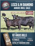 SALE CATALOG & SUPPLEMENTAL INFORMATION To view the online catalog, supplement sheets for weights and scrotals, video of selected lots and sale order, go to www.mdiamondangus.com Lisco & M Diamond Angus. Cattle Born & Bred with the Drive to Thrive. Welcome and we hope to see you Friday, March 23, at the Central Wyoming Fairgrounds Arena in Casper to view a great set of calving-ease and growth bulls offered by Lisco & M Diamond Angus. This is a set of balanced, deep, thick, multi-purpose bulls that have big REAs and lots of muscle and do-ability. No extremes, but cattle that work in all important traits under tough range conditions. This time-tested program produces calving ease, muscle and easy-fleshing cattle. Cattle that are docile, well balanced, and that fit the commercial customers’ needs. They produce females that truly do have the DRIVE TO THRIVE under the tough range conditions Wyoming can present. They are easy-fleshing, highly fertile, moderate-framed cattle with excellent udders and top mothering ability. We are offering many calving ease bulls, but we know they can produce calves that can bring in a heavy calf at weaning and perform in the feedlot and on the rail. Please give me a call if I can help with your selections in any way. I will be there Wednesday, March 21, through the sale. If weather or distance should be a problem, you can bid on the phone or through DV Auction on the internet. George Marcy, Marcy Livestock Services, Cell: (308) 430-2005